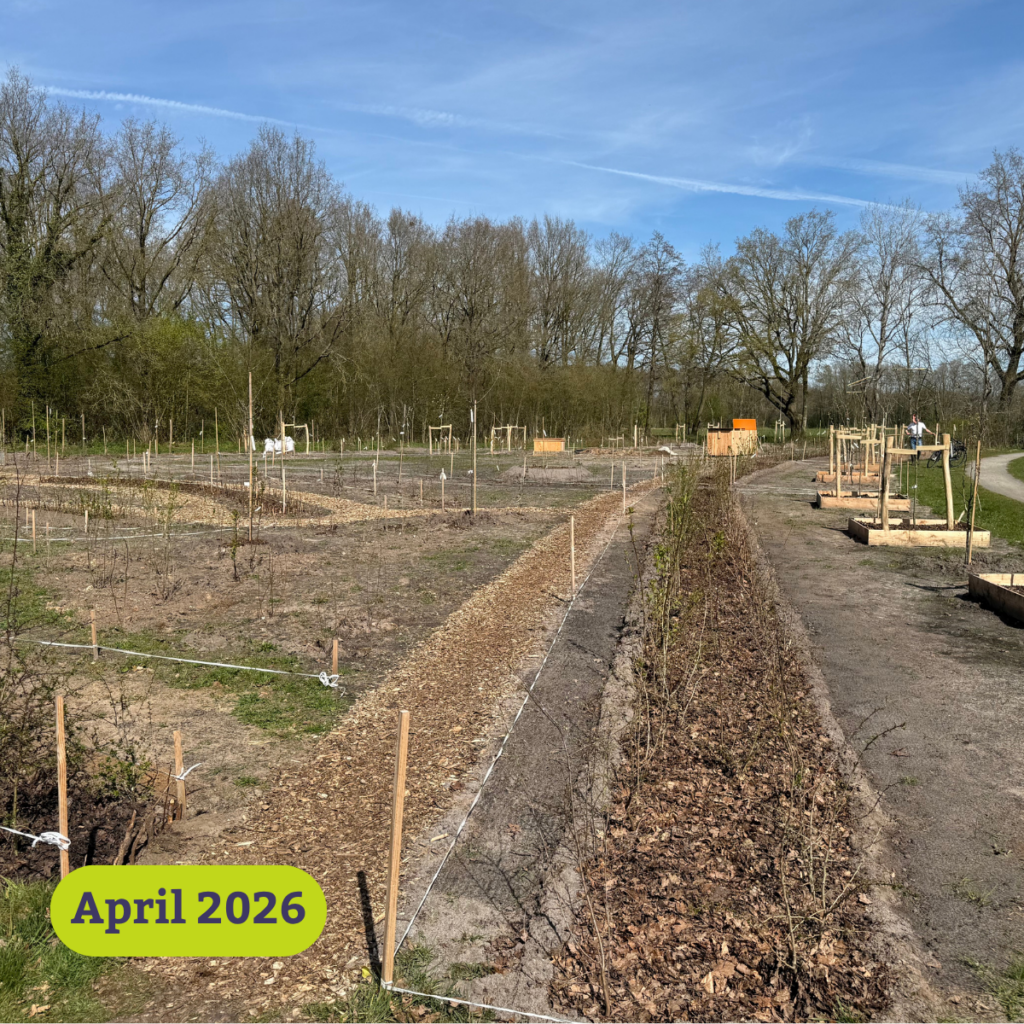 De fruithaag is het tweede project, na de aanleg van een openbare boomgaard even verderop. Op dit moment werkt de groep aan het derde project: ‘Plukpark Börk’. Waar in oktober nog een uitgestrekt, nietszeggend grasveld lag langs het wandelpaadje bij de Uutlangen, ontvouwt zich nu langzaam een levendig tafereel. Vandaag de dag loop je over kronkelende, zanderige paadjes langs een pas geplante bomenhaag. Verspreid over het terrein staan verschillende jonge fruitbomen en er is een zelfgebouwde waterput te vinden.