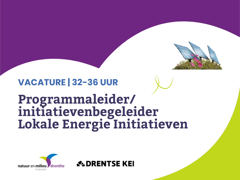 Wil jij jouw strategisch talent inzetten om Drenthe groener en duurzamer te maken — én steek je graag zelf de handen uit de mouwen? De Natuur en Milieufederatie Drenthe (NMF Drenthe) zoekt een programmaleider en initiatievenbegeleider voor het Steunpunt Lokale Energie Initiatieven. Iemand die nadenkt over wat echt verschil maakt, daar met overtuiging naar handelt en die graag samenwerkt aan een duurzame toekomst voor onze provincie.